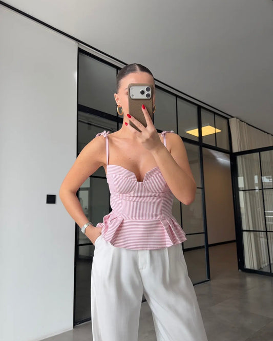 Strapless striped corset blouse