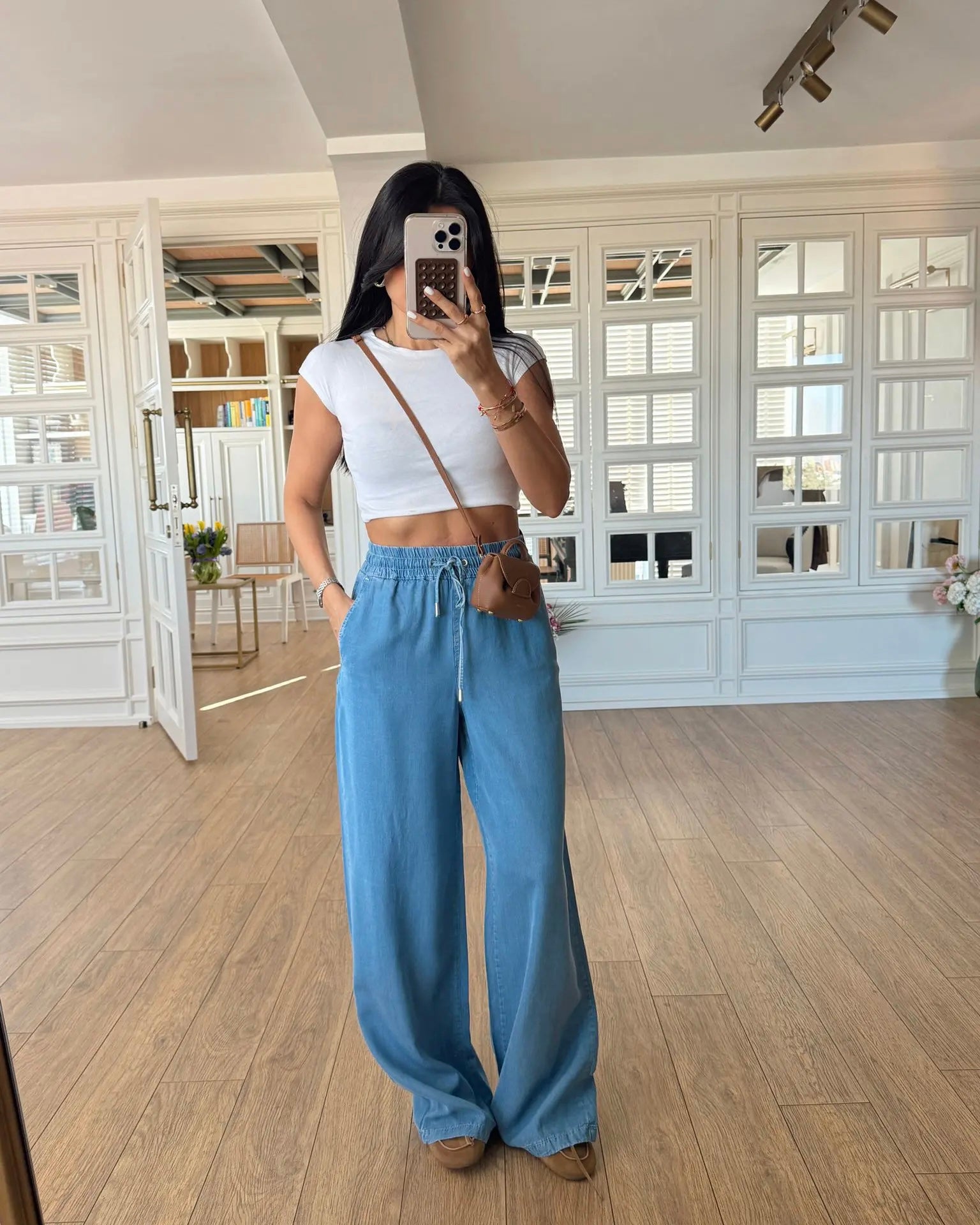 Baggy jeans with decorative pockets and tie-up closure