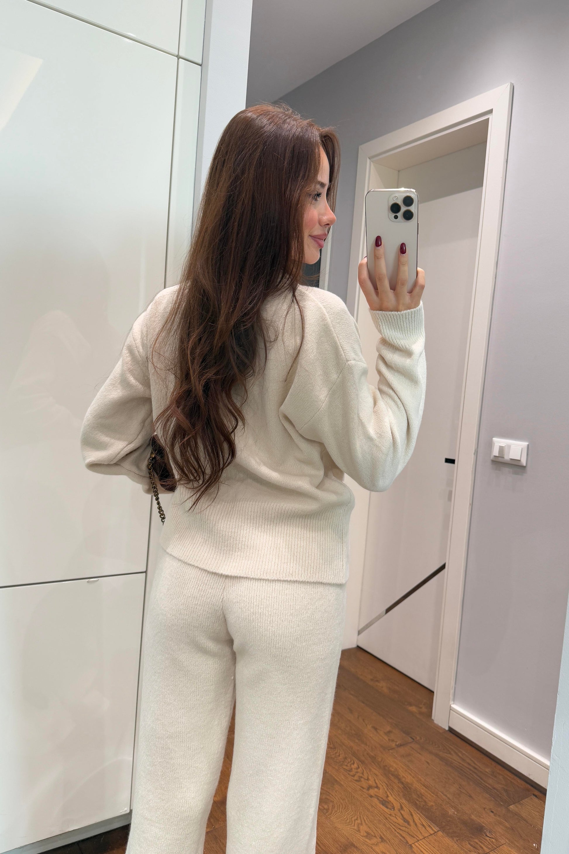 Crew neck buttoned cardigan and trousers set