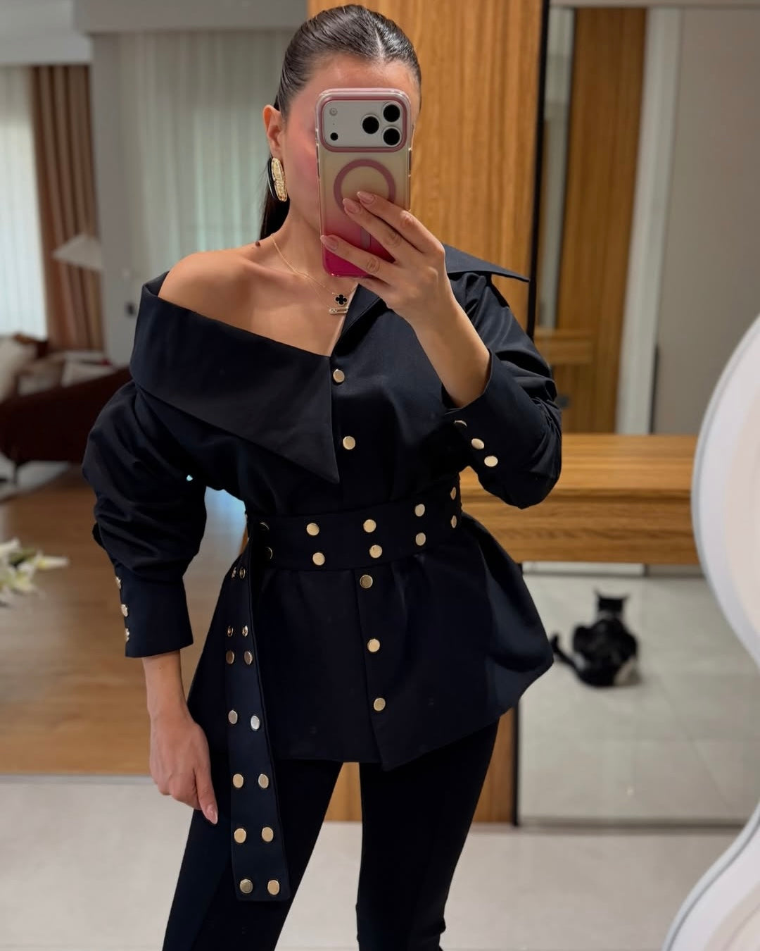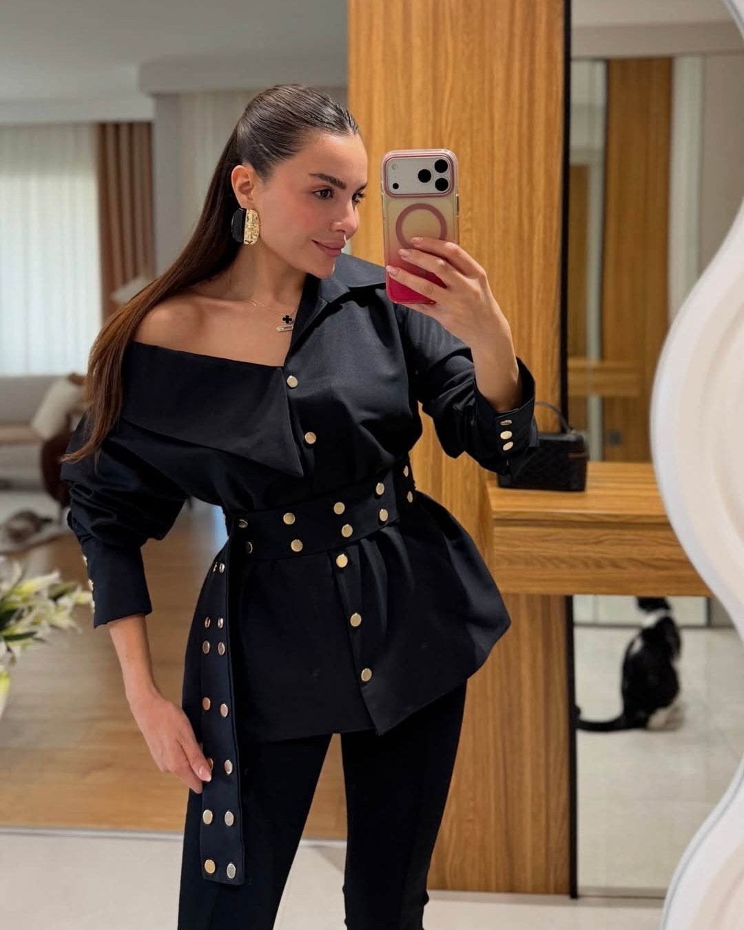 Fontue black studded designer shirt