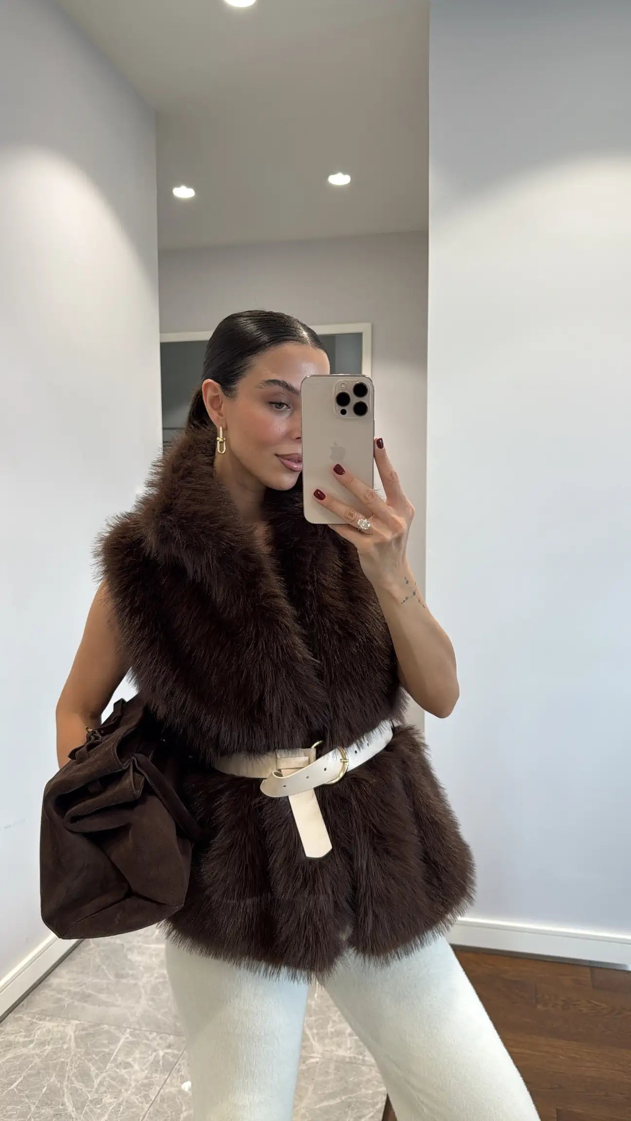 Fur vest with belts